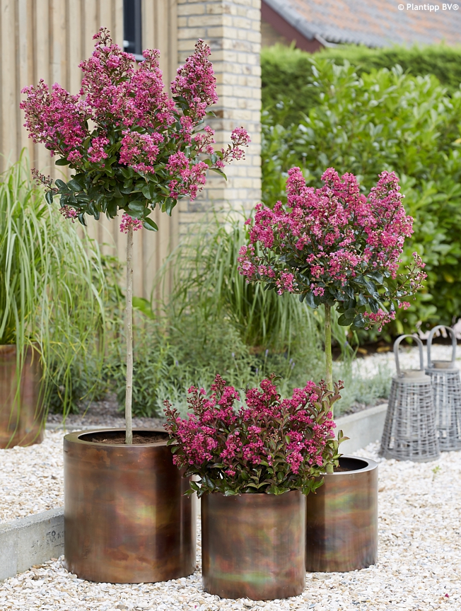 Lagerstroemie na vysokom kmeni sú kvitnúce stromy,ktoré dajú možnosť kochať sa zároveň aj v kráse kmeňa, aj vo vyššie osadených kvetov . Ideálny je tento tvar Lagerstroemie aj z dôvodu , že môžte využiť priestor pod jej korunou ( napr na výsadbu trvaliek, okrasných tráv, na priestor pre trávnatú plochu, na posedenie pod korunou stromu, atď. ).