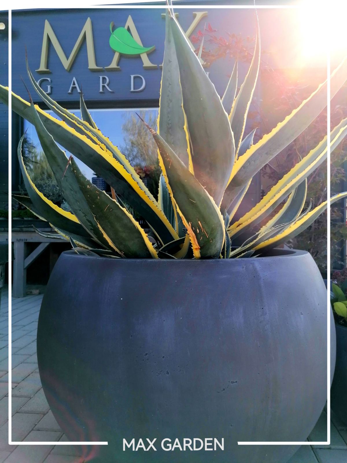 Agave americana 'Variegata', známa tiež ako pestrofarebná agáve alebo americká agáve, je atraktívna odroda agáve, ktorá je ceněná pre svoje nápadné, široké listy s krémovo-bielymi až žltkastými okrajmi a modrozeleným stredom. Táto odroda prináša exotický vzhľad do akéhokoľvek záhradného dizajnu alebo kontajnerovej výsadby, kde jej dramatické listy môžu byť plne ocenené. 'Variegata' je populárna pre svoju odolnosť voči sušu a schopnosť prispôsobiť sa rôznym prostrediam, čo ju robí ideálnou voľbou pre xeriskapové záhrady alebo ako výrazný solitérny prvok.