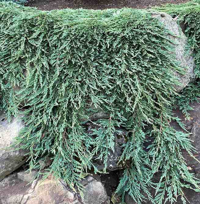 Nízko rastúci, pôdopokryvný ihličnan so striebristo modrozelenými ihlicami, ktorý vytvára hustý koberec.