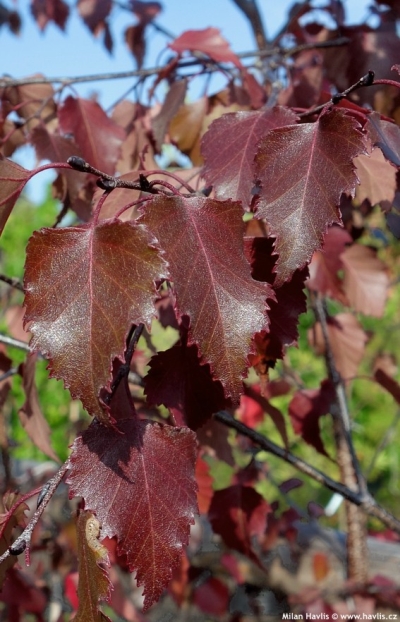 Breza previsnutá 'Royal Frost' je jedným z najpôsobivejších farebných kultivarov brezy. Jej hlavným lákadlom je unikátna kombinácia lesklých, tmavobordových až purpurových listov, ktoré si udržujú sýtu farbu počas celého leta, a snehobielej kôry. Tento kontrast ju predurčuje na to, aby bola okamžitou a dramatickou dominantou akejkoľvek záhrady. Je známa pre svoj rýchly rast a vysokú odolnosť.