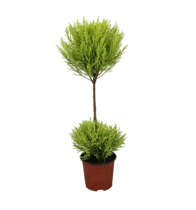 Táto forma Cyprušteka je pestovaná tak, aby si udržala kompaktnú guľovitú korunu na tenkom kmeni, čo z nej robí ideálnu rastlinu do kvetináčov a nádob. Rastie pomaly a jej veľkosť závisí od spôsobu pestovania a rezu. Typicky dosahuje výšku okolo 1 až 2 metre vrátane kmeňa.