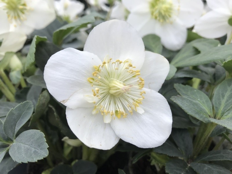 Vzhľad a veľkosťTvorí husté, kompaktné trsy kožovitých, dlaňovitých a tmavozelených listov, ktoré sú dekoratívne po celý rok. Dorastá do výšky 20 až 30 cm a má podobnú šírku. Kvety sú nesené na krátkych, pevných stonkách nad lístím a sú ideálne do malých zimných kompozícií.
