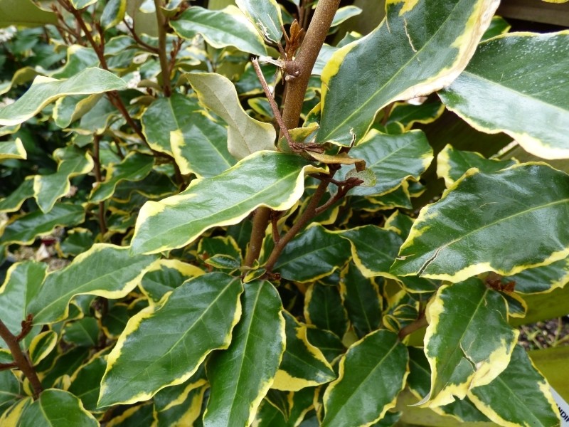 • Listy: Má atraktívne, pestrofarebné listy, ktoré sú zhora zelené s výrazným zlatým až krémovým okrajom. Spodná strana listov je strieborno-šedá, čo rastline dodáva ďalší vizuálny rozmer.