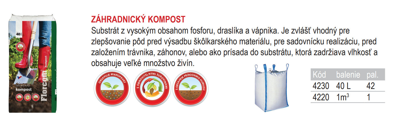 - kompost sa používa ako organické hnojivo k obohateniu pôdy pred výsadbou rastlín. Pre použitie do záhonov doporučujeme zmiešať (najlepšie kopaním do hĺbky cca 25 cm) 600 - 800 l kompostu s pôvodnou zeminou na ploche 100 m2. Pri príprave substrátu zmiešajte zeminu s kompostom v pomere 2:1.