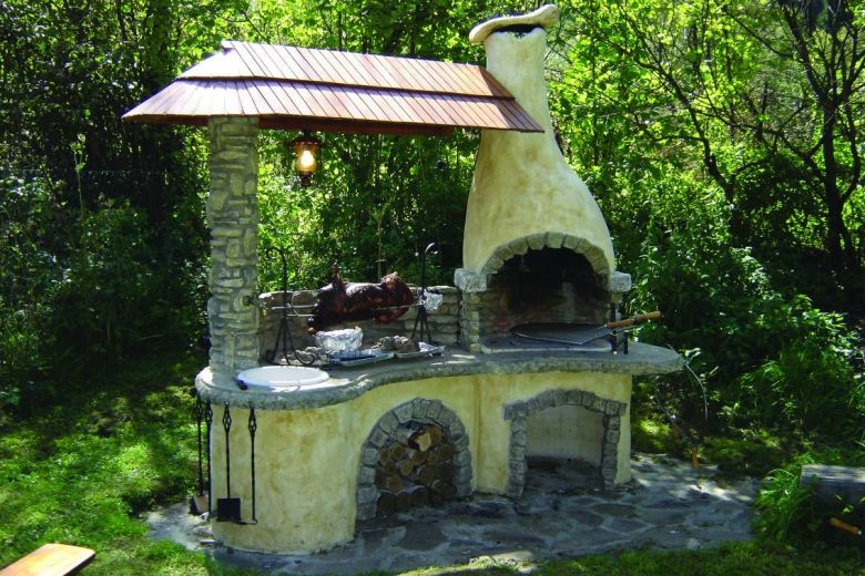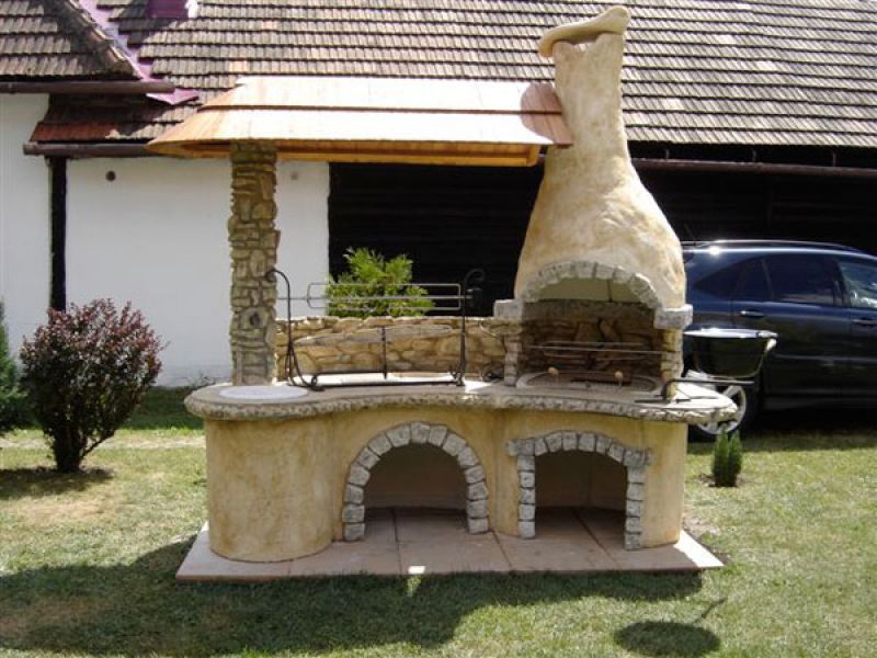 Náš najväčší záhradný krb vyrobený z umelého kameňa (ušľachtilého bieleho betónu, ohniská sú zo šamotu. Je vybavený technológiou GLOWSTOP. Súčasťou sú dve ohniská, umývadlo, odkladací priestor na drevo i strieška.