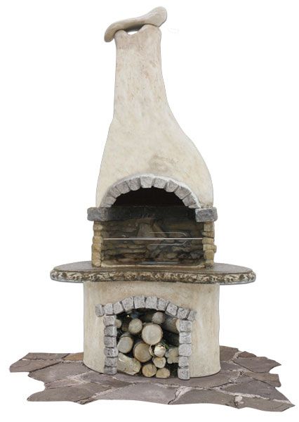 Záhradný krb / kozub vyrobený z umelého kameňa (ušľachtilého bieleho betónu), ohnisko je zo šamotu. Je vybavený technológiou GLOWSTOP. Vhodný aj do užších priestorov.