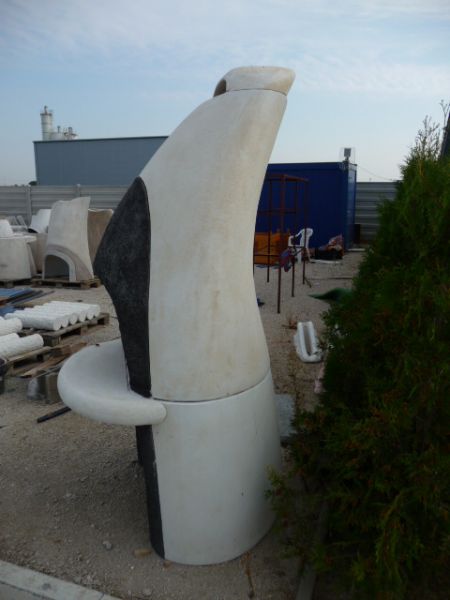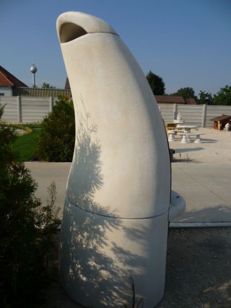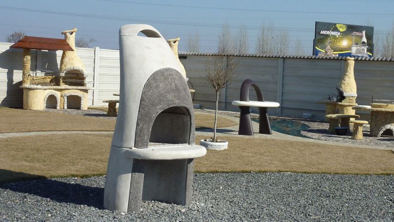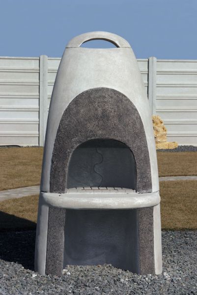 Záhradný krb vyrobený z umelého kameňa (ušľachtilého bieleho betónu), ohnisko je zo šamotu. Je vybavený technológiou GLOWSTOP. Originálny dizajn bol vytvorený v spolupráci s dizajnérom Martinom Jabrockým.