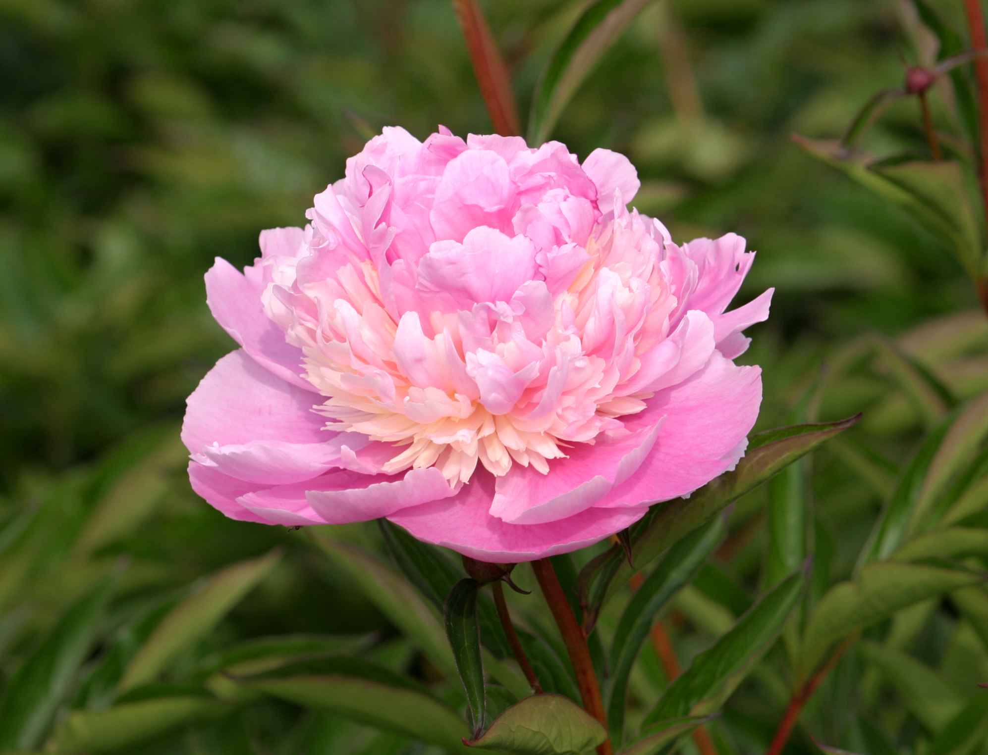 kvitne nádhernými veľkými kvetmi podla poddruhu od bielej, maslovej, žltkastej ,od slabo ružových odtieňov až po bordovú a fialovú farbu. Nájdeme medzi pivonkami aj viacfarebné odrody