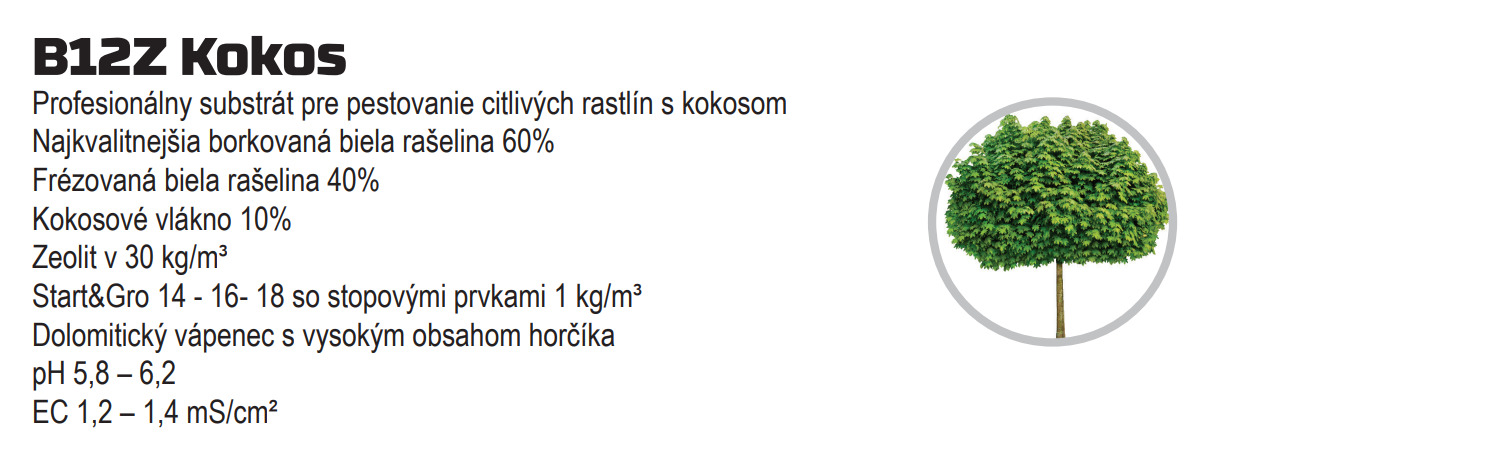 Substrát je nesliehavý s dobrou trvalo vzdušnou stredne hrubou štruktúrou s kokosovým vláknom. Udržuje optimálny pomer vzduchu a vlahy po dlhú dobu.
