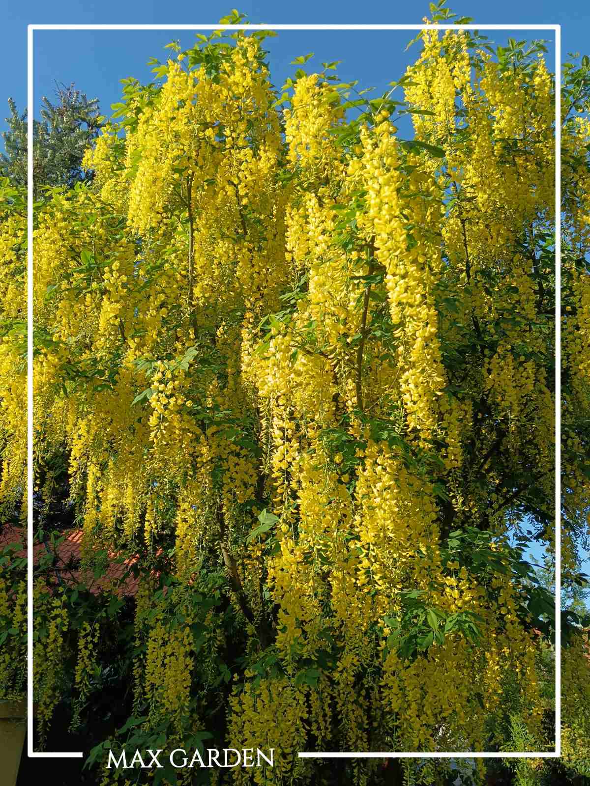 Laburnum alpinum 'Pendulum', známy aj ako zlatý dážď alpský previsnutý, je nádherný okrasný strom s charakteristickým previsnutým habitusom a kaskádovito zvesenými strapcami žltých kvetov. Tento kultivar je najčastejšie naštepený na kmeni a využívaný ako atraktívny solitér do reprezentatívnych častí záhrady. Jeho romantický vzhľad a žiarivý jarný kvet ho predurčujú na upútanie pozornosti v každom priestore.