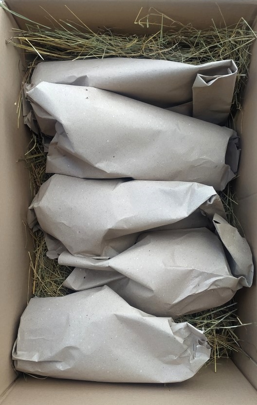Ako obalovú výplň do krabíc, používame čisté lúčne seno, čo je taktiež možné kompostovať v domácej kompostárni, alebo použivať ako mulčovací materiál medzi rastlinami.