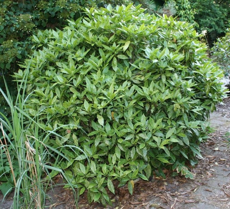 je svojou farbou výrazný, stálozelený, stredne vysoký krík