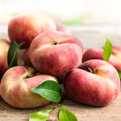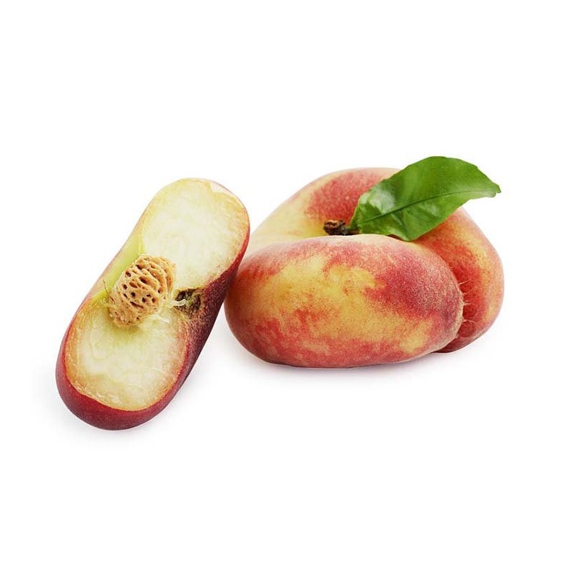 Plody sú plocho guľovité, pripomínajúce disk alebo tanierik, čo je ich najvýraznejším poznávacím znakom. Šupka je krémovo žltá, z veľkej časti pokrytá žiarivo červeným líčkom. Dužina je biela, veľmi jemná, šťavnatá a má výrazne sladkú, takmer medovú chuť s nízkym obsahom kyselín. Kôstka je v porovnaní s bežnými broskyňami veľmi malá, čo zvyšuje podiel využiteľnej dužiny. Dozrieva v polovici augusta a vďaka svojmu tvaru je ideálna na desiatu pre deti, pretože sa ľahko konzumuje.