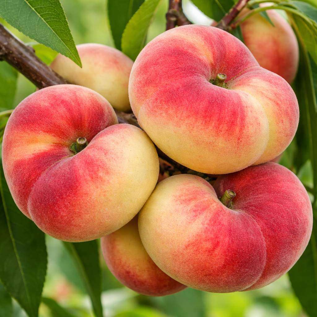 PlodyPlody tejto stredne skorej odrody sú nezameniteľné – majú sploštený, tanierovitý tvar. Šupka je bielo-žltá, pokrytá jemným červeným líčkom na oslnenej strane. Biela dužina je mimoriadne sladká, aromatická a šťavnatá, s výrazne nižším obsahom kyselín než pri bežných odrodách. Kôstka je veľmi malá a ľahko sa oddeľuje. Vďaka svojmu tvaru sa plody veľmi dobre konzumujú a sú ideálnou zdravou pochúťkou.