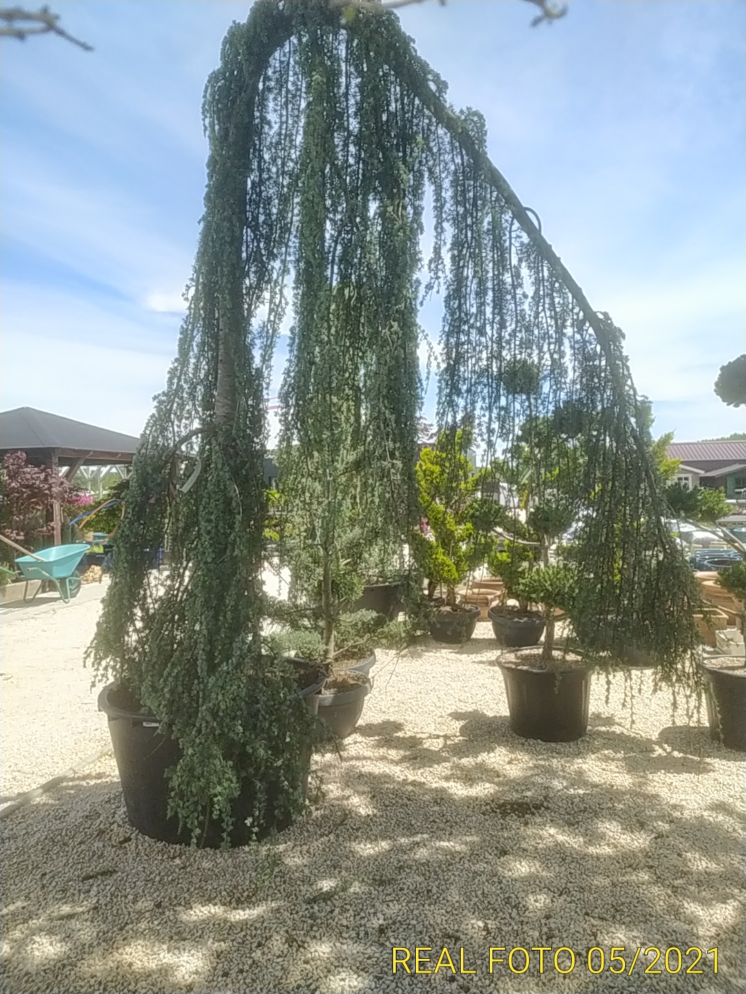 v mladosti jeho previsnutý vrchol vyväzujeme k opornému kolíku tak dlho , kým náš céder nedosiahne želanú výšku. Potom ho prestaneme vyväzovať do výšky, tým rastlina začne prevísať a rastie už iba do šírky, zahusťuje sa a vytvára bizarne previsnuté konáre