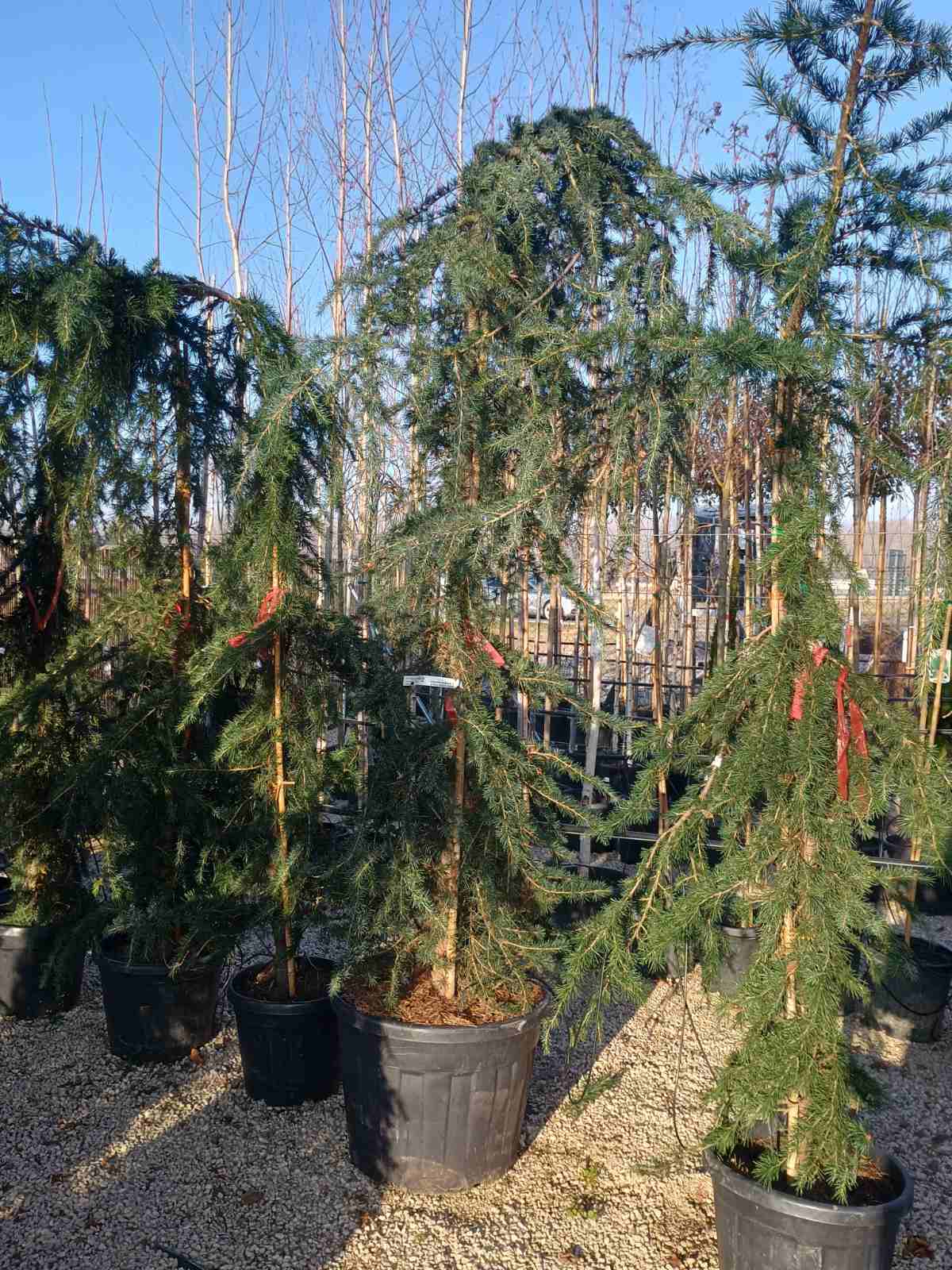 v mladosti jeho previsnutý vrchol vyväzujeme k opornému kolíku tak dlho , kým náš céder nedosiahne želanú výšku. Potom ho prestaneme vyväzovať do výšky, tým rastlina začne prevísať a rastie už iba do šírky, zahusťuje sa a vytvára bizarne previsnuté konáre
