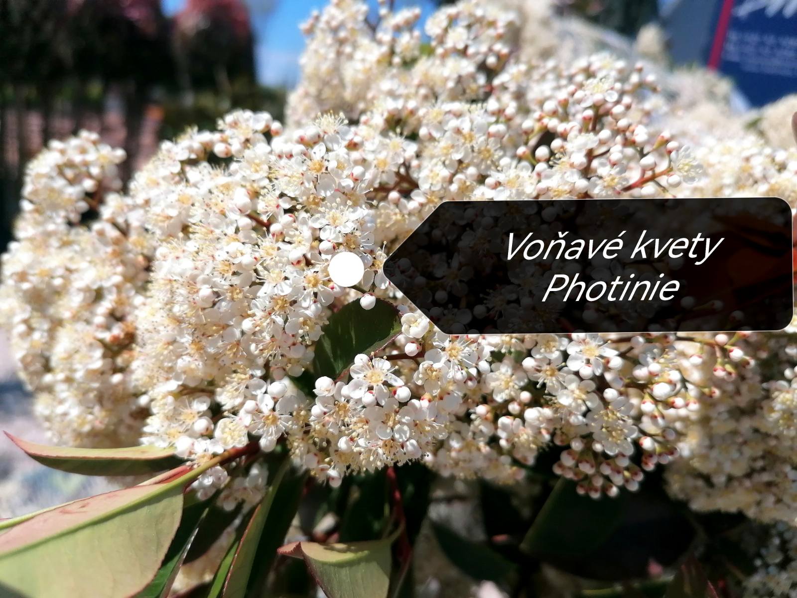 Kvitnutie: Na jar 'Red Robin' produkuje drobné bielo-krémové kvety zoskupené do kvetenstiev, ktoré pridávajú ďalší estetický rozmer a sú príťažlivé pre opelujúci hmyz.