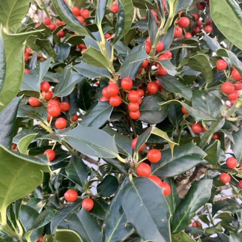 PlodyTáto odroda je celosvetovo známa svojou bohatou úrodou žiarivo červených bobúľ. ´Nellie R. Stevens´ je samoopelivá, takže aj jeden samostatne stojaci kužeľ bude na jeseň a v zime obsypaný dekoratívnymi plodmi. Bobule dozrievajú v priebehu októbra a na rastline vytrvávajú hlboko do zimy, čím vytvárajú ikonický farebný kontrast s tmavozeleným olistením. Plody sú nejedlé pre ľudí, no poskytujú cennú potravu pre vtáctvo a sú obľúbeným materiálom pre luxusné vianočné dekorácie.