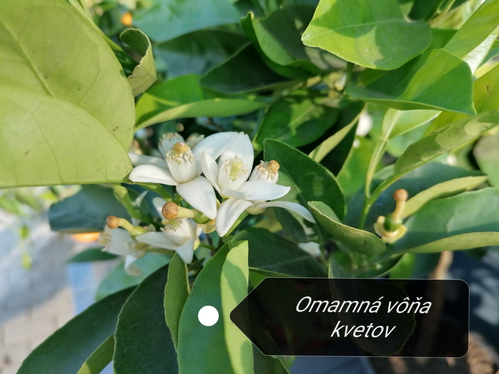 KvitnutieKvitne skoro na jar (pred olistením) snehobielymi, veľkými kvetmi (3-5 cm), ktoré sú mimoriadne silno a príjemne voňavé, pripomínajúc typickú vôňu citrónovníka. Kvety sa objavujú jednotlivo a rýchlo sa menia na malé plody.