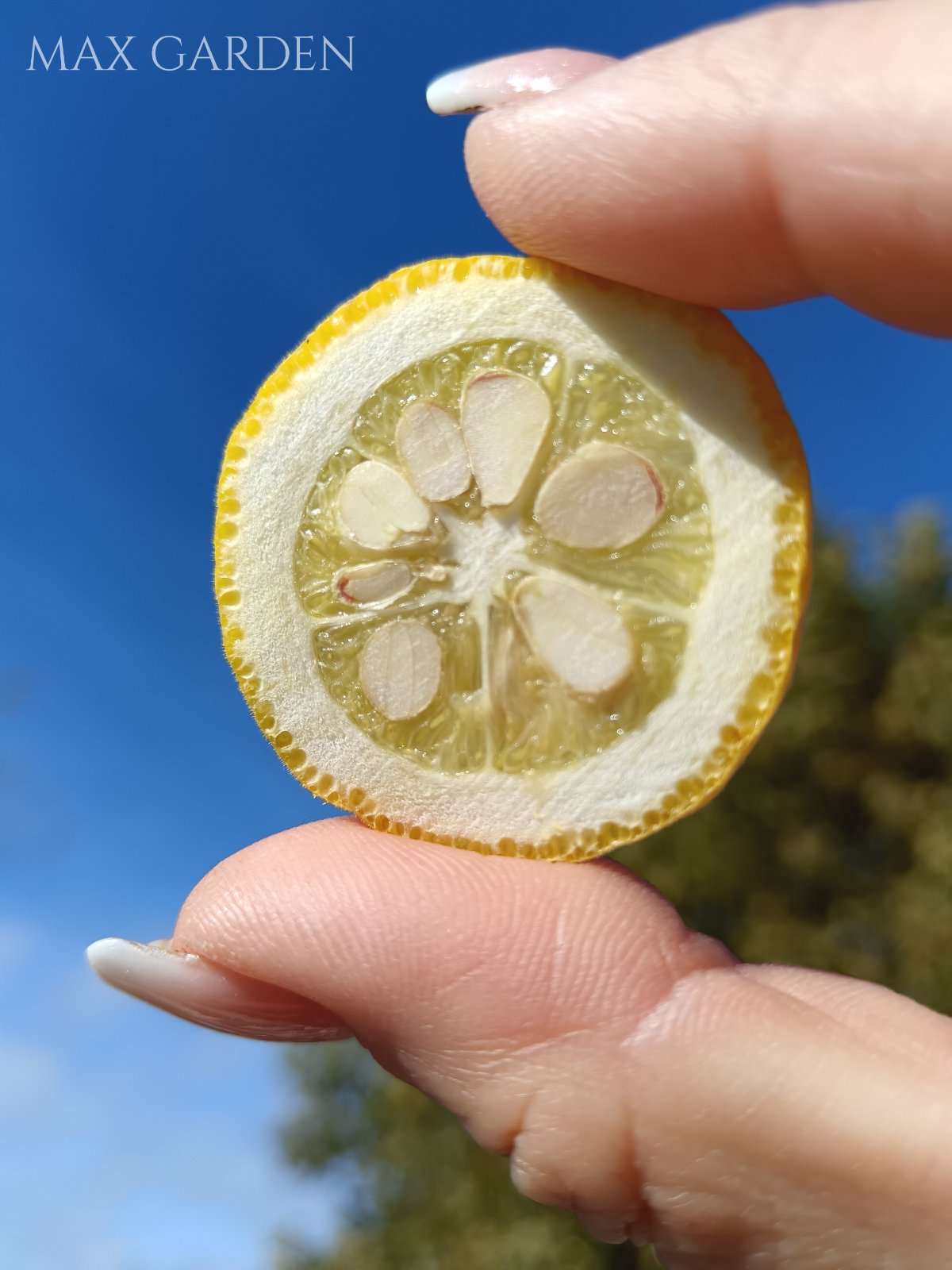 Plody (Citróniky)Produkuje malé, guľaté plody, pripomínajúce miniatúrne citróny, s priemerom 3–5 cm. Plody dozrievajú na jeseň do žiarivo žltej farby. Hoci sú technicky jedlé, ich chuť je kvôli obsahu esenciálnych olejov veľmi horká a kyslá. Používajú sa skôr na ochutenie marmelád, džemov alebo ako neobvyklá vianočná dekorácia.