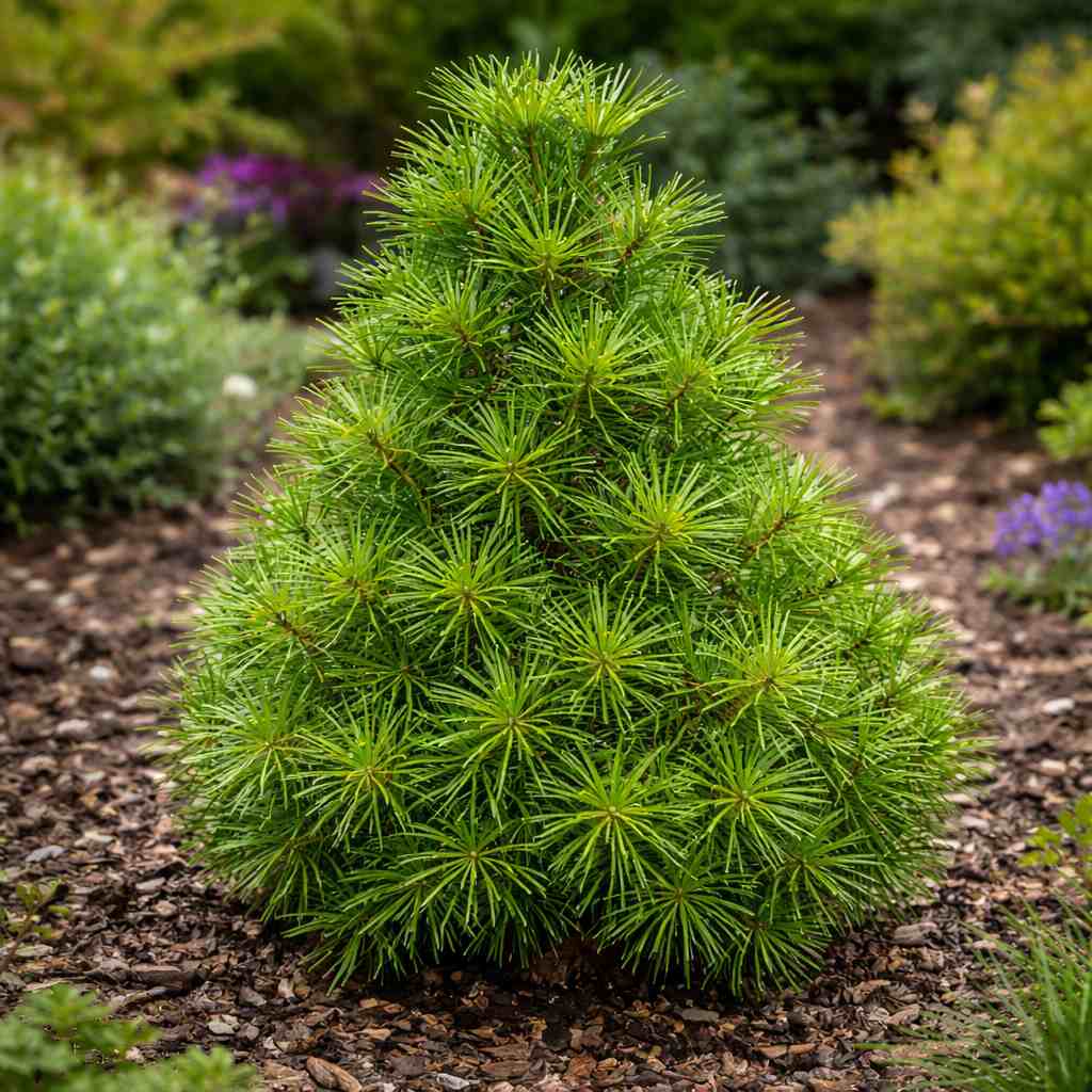 CharakteristikaDáždnikovec praslenovitý ´Beauty Green´ je vylepšený kultivar tohto vzácneho japonského ihličnana, ktorý sa vyznačuje mimoriadne hustým rastom a intenzívnou, sýtozelenou farbou ihličia. Jeho meno „Beauty Green“ dokonale odráža jeho estetickú hodnotu – hrubé, lesklé ihlice sú usporiadané v príznačných praslenoch, ktoré pripomínajú kostru dáždnika. Tento kultivar si zachováva svoju brilantnú farbu počas celého roka, a to aj v zimnom období, kedy iné odrody môžu mierne žltnúť.
