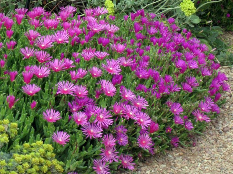 • jej veľké kvety tvoria nádhernú perinu vo farbách purpurovej až fuksiovo ružovej ,ale aj žltej až oranžovej