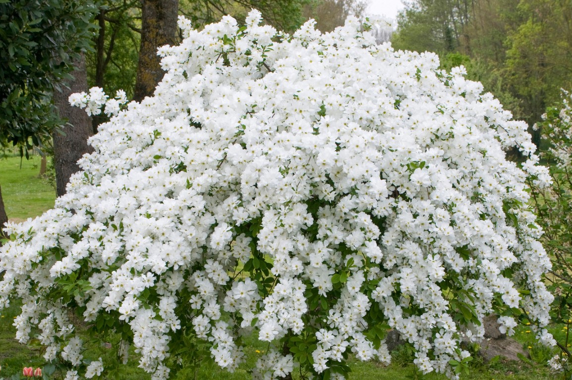 Krátky popis rastliny: Exochorda macrantha 'The Bride' je stredne veľký ker s bohatým kvitnutím bielych kvetov.