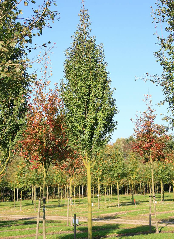 - Rastový tvar: 'Stricta' má stĺpovitý a úzky rastový tvar, čo z neho robí vhodný výber pre miesta s obmedzeným priestorom alebo ako výrazný bod záujmu v krajinnom dizajne. Jeho koruna je obvykle úzka a stĺpovitá, s minimálnym vetvením na bokoch.