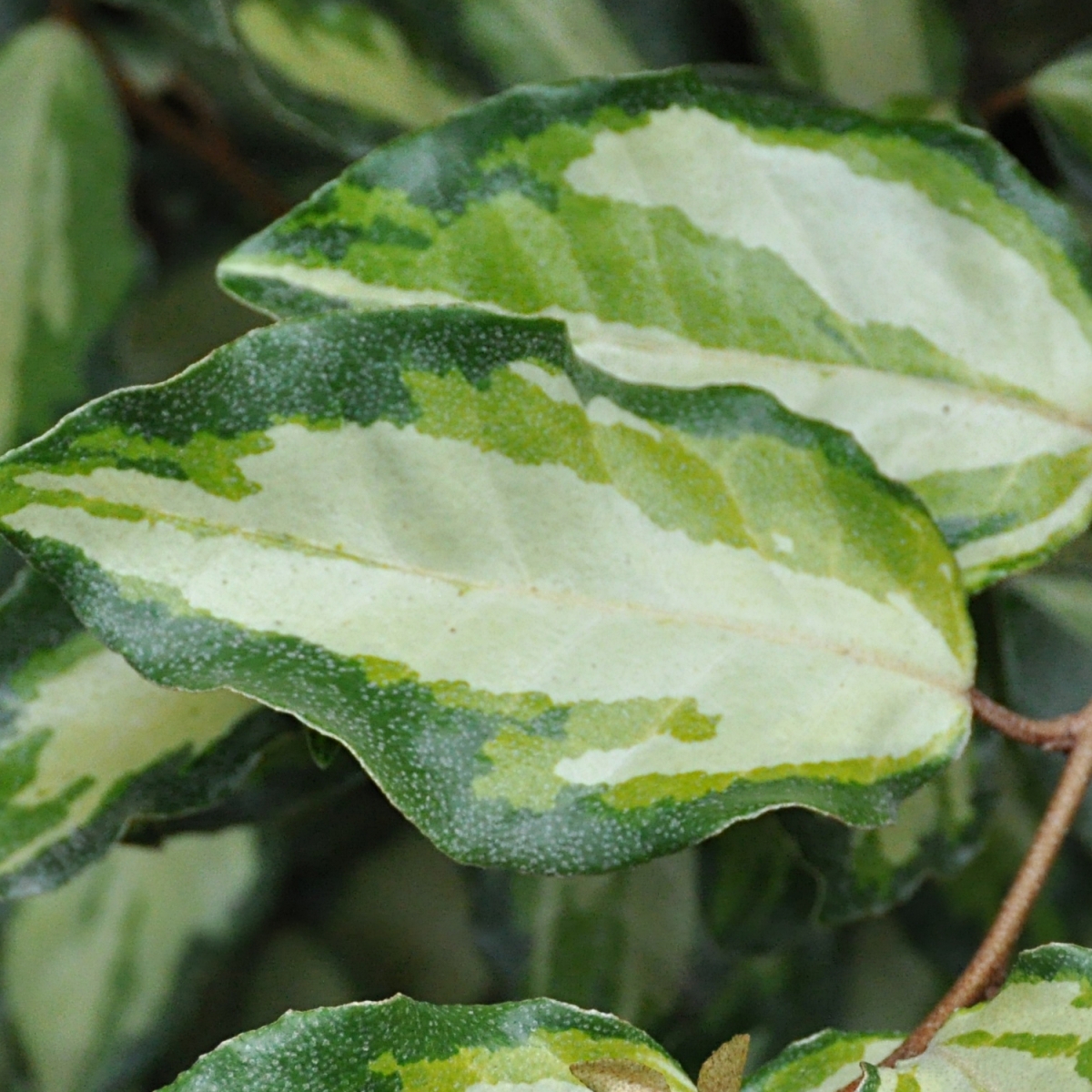Hlošina Ebbingeho 'Maryline' (Elaeagnus ebbingei 'Maryline') je výnimočná odroda hlošiny, ktorá je obzvlášť ceněná za svoje pestrofarebné listy. Tento kultivar pridáva do záhradných dizajnov jasný vizuálny záujem vďaka svojim zeleným listom s nápadnými zlatými pruhmi uprostred, čo rastline dodáva atraktívny a dekoratívny vzhľad. 'Maryline' je ideálna pre použitie ako živý plot, solitérna rastlina alebo ako súčasť zmiešaných záhonov, kde môže prispieť k farebnej variácii a textúre.