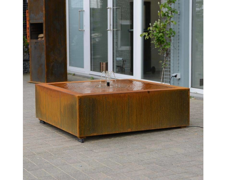 Veľmi pekná ručne vyrobená fontána štvorcového tvaru z cortenovej ocele. Povrch fontány Hobart je pokrytý hrdzavou patinou, vďaka čomu má príťažlivý a zaujímavý vzhľad.
