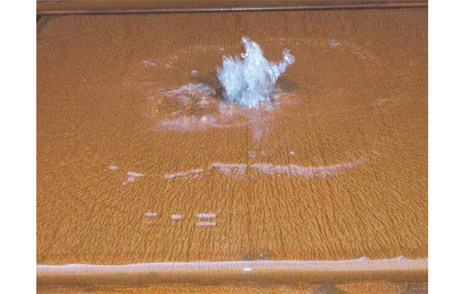 Cortenová oceľ má vlastnosť, že tvorí vrstvu hrdze, ktorá tiež slúži ako ochrana podkladovej vrstvy- to robí cortenovú oceľ jednou z najodolnejších ocelí. Tieto vodné stoly sú dodávané bez hrdze, pričom tvorba korózie môže trvať cca jeden rok Proces hrdzavenia urýchli pravidelné striekanie oceľového výrobku so slanou vodou. Takto vytvorená hrdza oceľ nepoškodzuje, ale naopak ju ochranuje voči poveternostným vplyvom a korózii. Navyše je Corten ekologický materiál, pretože nevyžaduje žiadnu antikoróznu úpravu.