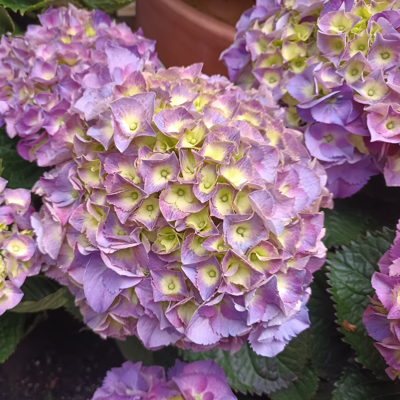 • Kvety: Kvety sú veľké, guľovité, v sýtej purpurovej farbe, ktorá sa môže meniť v závislosti od pH pôdy. V kyslých pôdach majú kvety tendenciu byť intenzívne fialové, zatiaľ čo v neutrálnych alebo mierne zásaditých pôdach sa môžu objaviť v jemnejších tónoch modrej alebo ružovej. Kvitnú od polovice leta až do začiatku jesene.