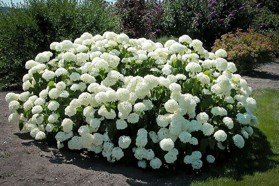 kvitne od augusta do neskorej jesene veľmi bohato s dokonalými guľatými bielymi kvetmi