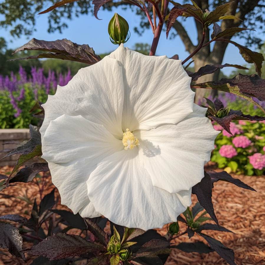 CharakteristikaHibiscus moscheutos, známy ako ibištek bahenný, je robustná, mrazuvzdorná trvalka, ktorá svojím vzhľadom pripomína tropické rastliny. Pochádza z vlhkých oblastí Severnej Ameriky, čo predurčuje jeho nároky na pestovanie. Každú jar vyrastá nanovo z koreňov a v priebehu pár mesiacov vytvorí mohutný, bohato olistený trs. Je to ideálna solitérna rastlina, ktorá sa stane stredobodom pozornosti v každom letnom záhone alebo v blízkosti záhradných jazierok.