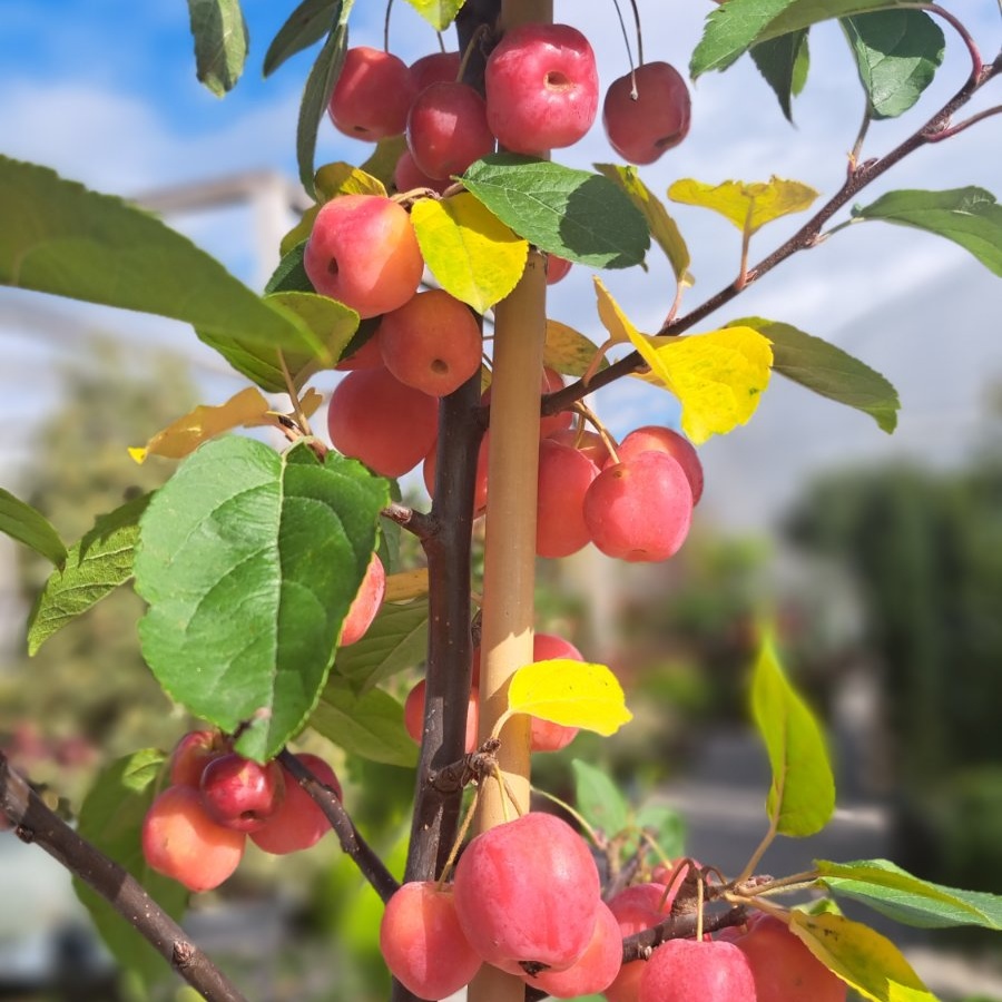 Skutočná šou však začína na jeseň, kedy sa na rastline objavia trsy drobných, žiarivo červených jabĺčok pripomínajúcich veľké čerešne. Tieto plody sú mimoriadne trvácne a na konároch zostávajú často až do neskorej zimy, kedy slúžia ako potrava pre vtáctvo a zároveň zdobia zasneženú záhradu. Viackmeňová forma dodáva stromu širšiu korunu a zaujímavú štruktúru kôry, ktorá vynikne najmä v zimných mesiacoch.