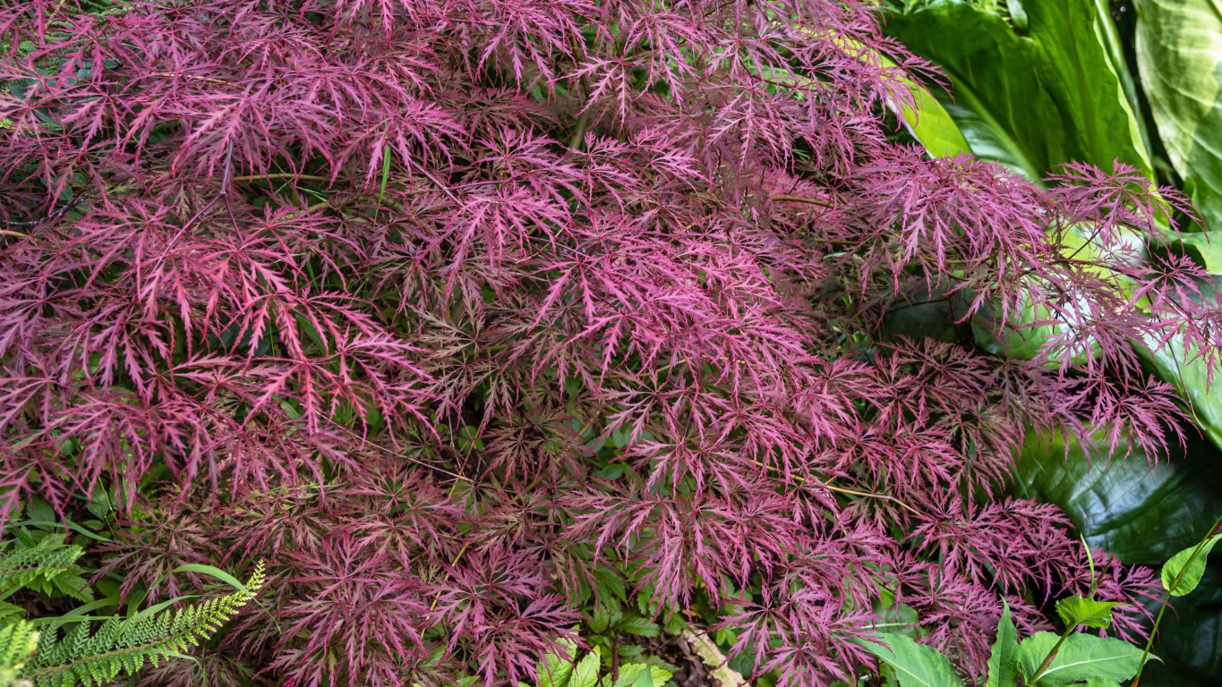 jeho strihané listy majú prekrásnu purpurovú farbu, ktorá na jeseň je intenzívne žiarivo-červená až oranžovočervená