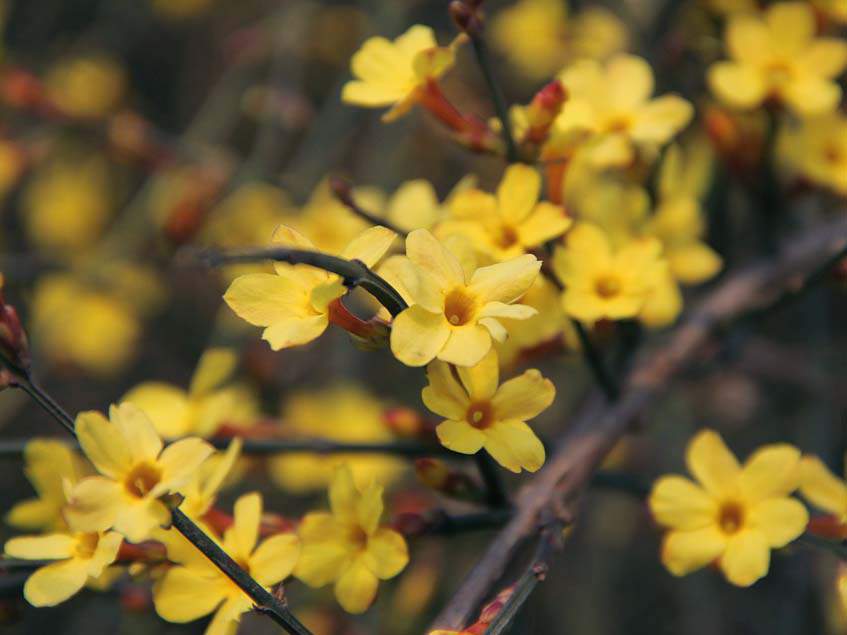 CharakteristikaJasminum nudiflorum, u nás známy ako jazmín nahokvetý, je opadavý, rozložitý ker, ktorý patrí medzi najneobyčajnejšie rastliny našich záhrad. Jeho najväčšou prednosťou je čas kvitnutia – kvety sa objavujú v období, keď väčšina záhrady ešte spí. Hoci má ker dlhé, štíhle zelené výhony, ktoré pôsobia stálezelene, na zimu svoje listy stráca. Je to mimoriadne prispôsobivá drevina, ktorú môžeme nechať voľne rásť ako pôdokryvný ker, alebo ju vyväzovať k opore ako popínavú rastlinu.