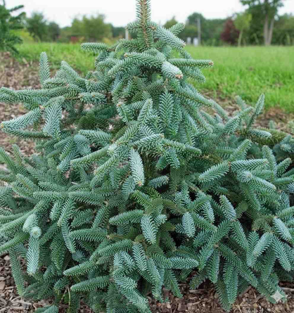 Vzhľad a veľkosťRastlina rastie stredne rýchlo a vytvára pravidelný, široko kužeľovitý až pyramídový tvar. V dospelosti môže dosahovať výšku 5 až 8 metrov a šírku približne 2 až 3 metre, no vďaka svojmu miernemu tempu rastu je vhodná aj do stredne veľkých záhrad. Ihlice sú krátke, tuhé, pichľavé a majú nádhernú striebristo-modrú až modrozelenú farbu, ktorá zostáva atraktívna počas celého roka.