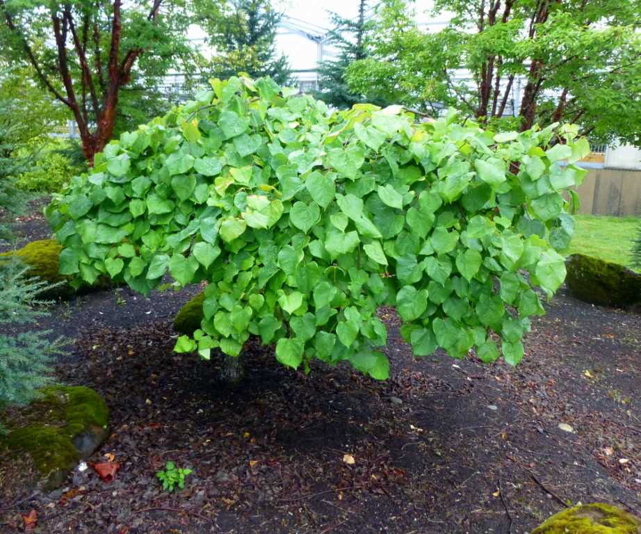 Listy: Listy sú srdcovitého tvaru, zelené a lesklé. Po odkvitnutí vytvárajú hustú a zelenú korunu, ktorá chráni strom pred priamym slnečným žiarením.