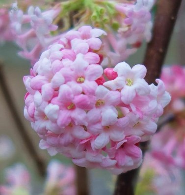 CharakteristikaViburnum bodnantense 'Dawn' je opadavý, vzpriamene rastúci ker, ktorý dosahuje výšku 2 až 3 metre. Tento kultivar je mimoriadne cenený pre svoje skoré kvitnutie, ktoré začína v miernych zimách už v januári a prebieha až do apríla. Kvety sú v púčikoch tmavoružové, po rozkvete svetloružové až biele a vyrastajú v hustých strapcoch na holom dreve. Okrem vizuálnej krásy šíria okolo seba silnú, sladkú vôňu. Listy sú podlhovasté, hlboko žilnaté a na jeseň sa sfarbujú do atraktívnych vínovočervených odtieňov.