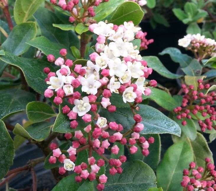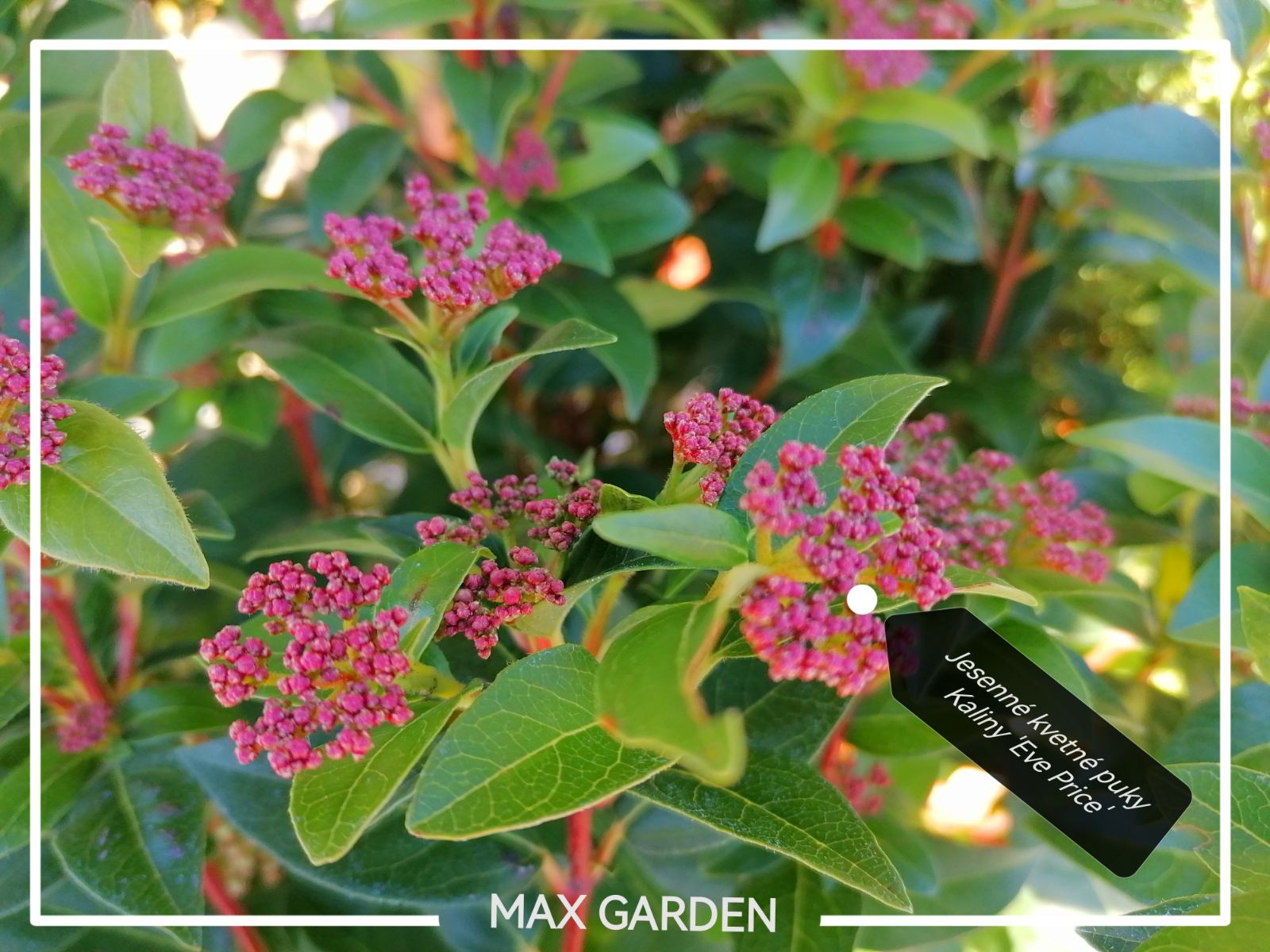 - Viburnum tinus 'Eve Price' je kompaktný ker s hustým a zaobleným rastom.