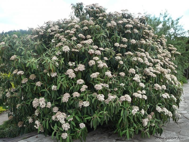 Charakteristika: Hustý, veľký, stálozelený ker s výraznými listami a bohatým jarným kvitnutím, vhodný do väčších výsadieb.