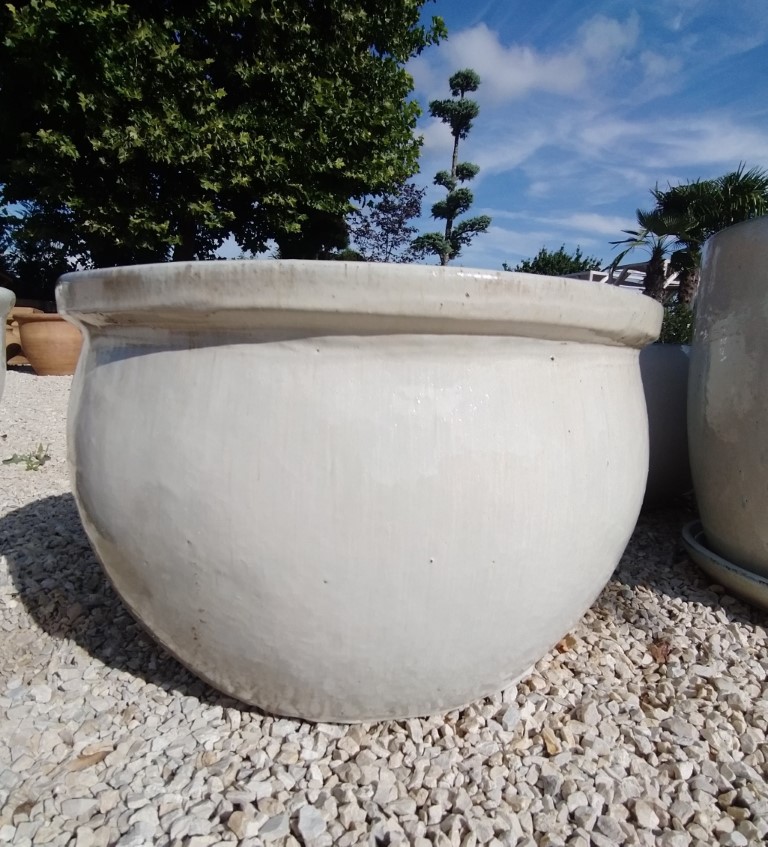Keramický mrazuvzdorný kvetináč do exteriéru, na terasy a do zimných záhrad sa vyznačuje veľmi kvalitným prevedením. Kvetináč je zaliaty krémovou lesklou glazúrou za výpalu pri vysokej teplote, 1100 C výpal. Doplnkom je dostatočne hlboká podmiska,kt. ponúka dosť priestoru na odtok vody a tvar kvetináča zase dostatočný priestor na koreňový systém rastlín.