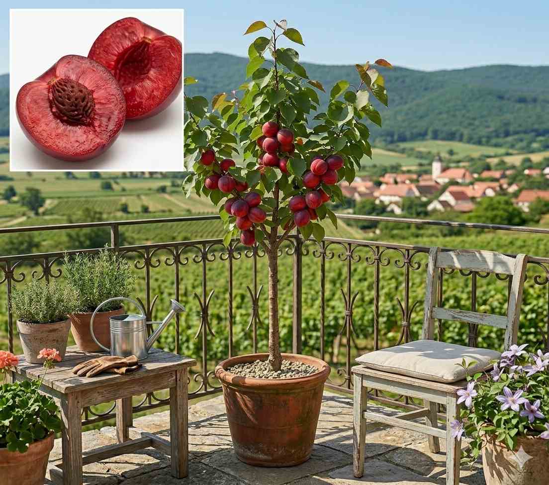Chuť plodov je výnimočne koncentrovaná, sladká s jemným korenistým podtónom a vyváženou kyselinkou. Stromček pôsobí dekoratívne od skorej jari, kedy bohato zakvitne výraznými ružovými kvetmi. Vďaka kompaktnému rastu a nízkemu kmienku je ideálna do nádob. Je samoopelivá a vysoko odolná, čo z nej robí perfektnú voľbu pre BIO pestovateľov, ktorí túžia po zdravej a netradičnej úrode na dosah ruky.
