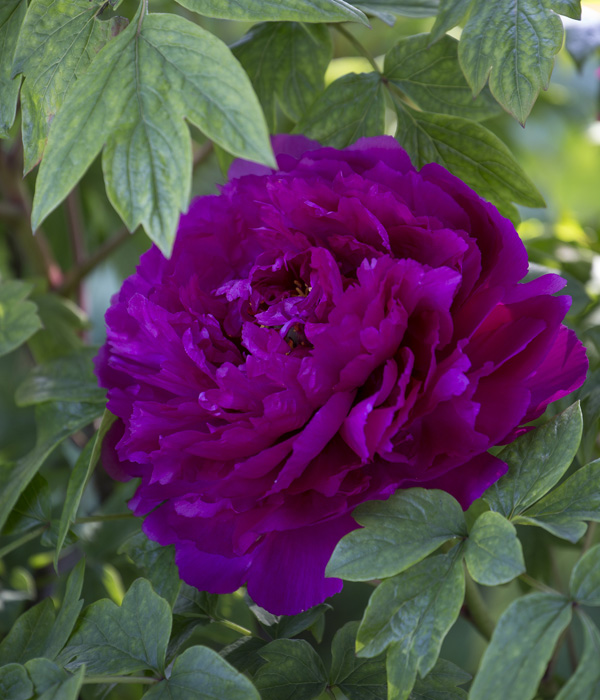 Kvety sa pýšia hodvábnou textúrou okvetných lístkov a bohatým stredom so sýtožltými tyčinkami. Listy sú hlboko vykrajované, laločnaté a majú atraktívnu modrozelenú farbu, ktorá zostáva dekoratívna počas celého vegetačného obdobia. Ide o mimoriadne dlhovekú drevinu, ktorá na jednom stanovišti dokáže prosperovať desiatky rokov. Je symbolom prosperity a vznešenosti, pričom v dospelosti vytvára dychberúci kvitnúci solitér, ktorý dominuje každej jarnej záhrade.
