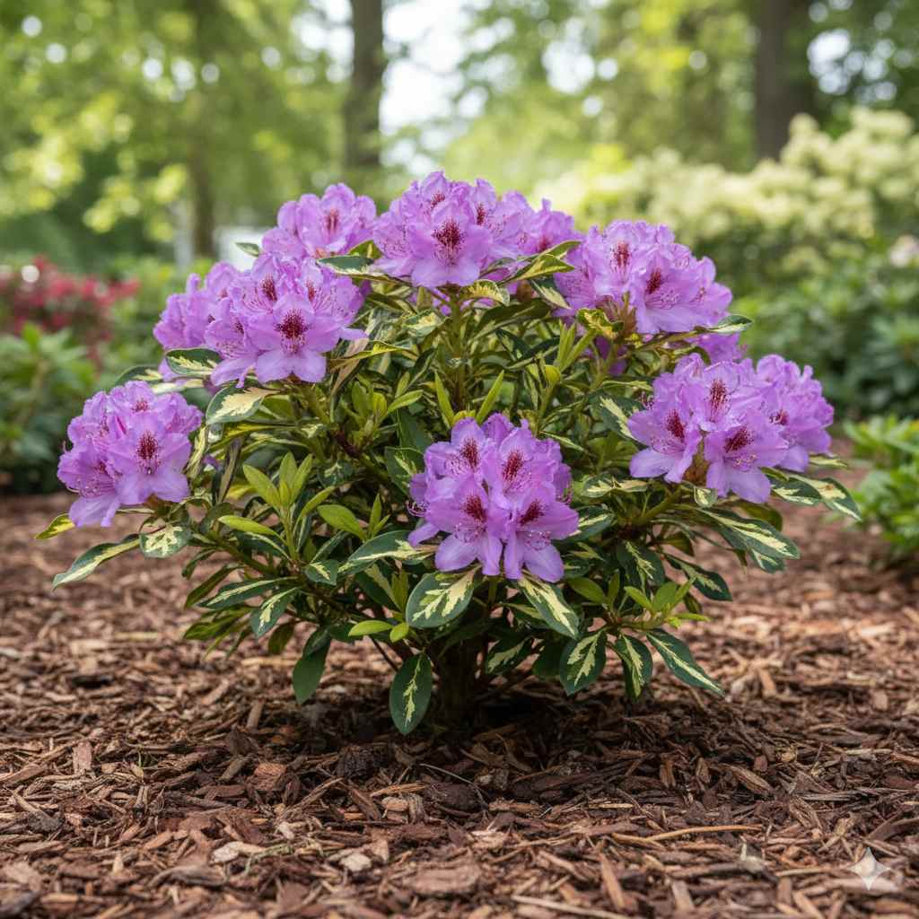 CharakteristikaRhododendron ´Blattgold´ je fascinujúci vždyzelený ker, ktorý do polotienistých kútov záhrady vnáša svetlo a jas. Jeho najväčšou pýchou sú veľké, kožovité listy so sýtozeleným stredom a nápadným, širokým krémovo-žltým až zlatistým okrajom. Vďaka tomuto kontrastnému sfarbeniu je rastlina vizuálne príťažlivá počas celého roka.