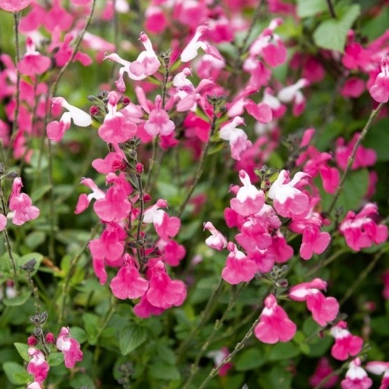Salvia microphylla 'Pink Lips', známa aj ako šalvia drobnolistá 'Pink Lips', je atraktívna, dlho kvitnúca trvalka, ktorá je obľúbená pre svoje dvojfarebné ružovo-biele kvety a aromatické listy. Táto odroda šalvie dodáva záhrade farebný šmrnc počas celej sezóny a je veľmi odolná a nenáročná.