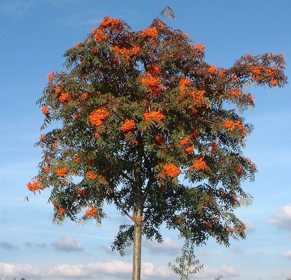 jarabina vtáčia je opadavý, kvitnúci strom s veľmi dekoratívnymi plodmikvitne od mája do júna, kvety sú bledožltéplody sú nápadné malvice jasnočervenej farby, ktoré sú nejedlé