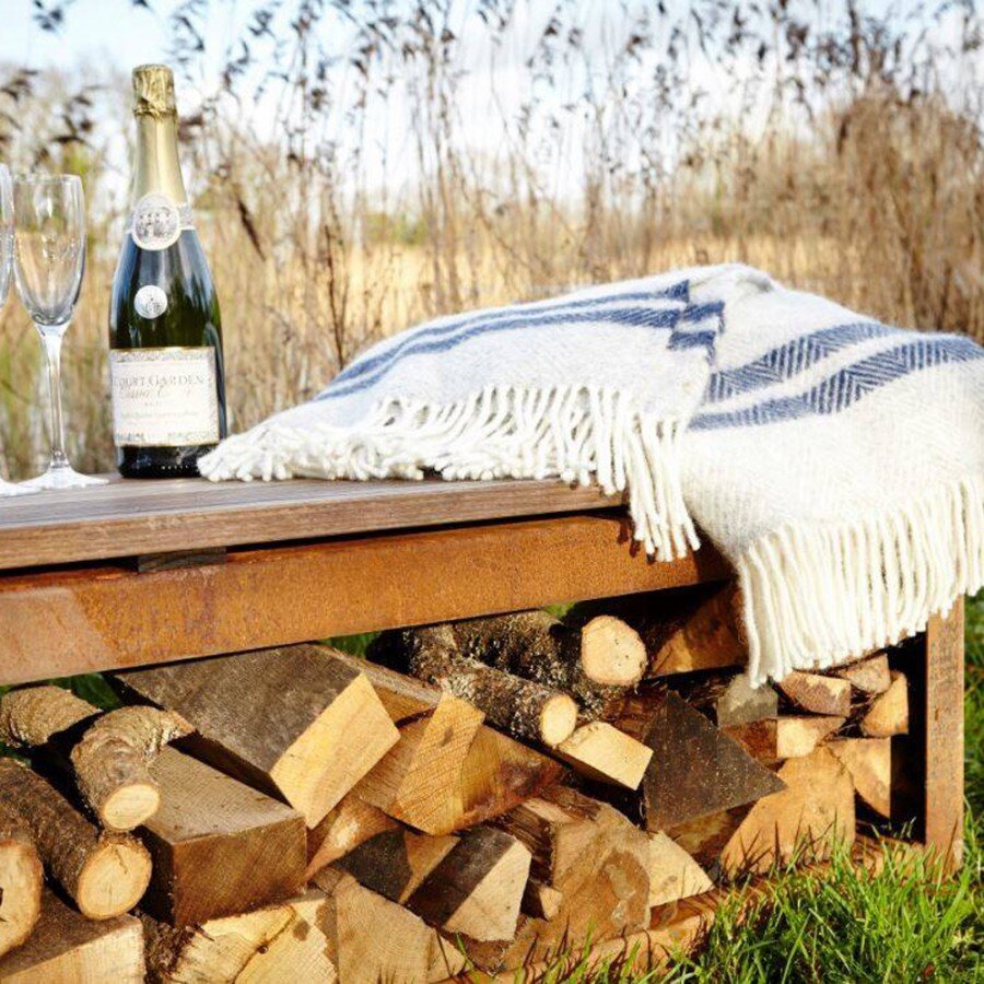Úložný priestor na drevo z Cortenu sa dodáva tiež aj s čiernym prevedením RAL9005.