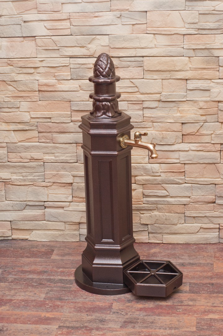 Záhradný hydrant je vyrábaný z hliníkovej zliatiny,takže Vám nebude korodovať. Ošetrené kvalitným náterom,ktorý odoláva UV žiareniu a opotrebovaniu vo vonkajšom prostredí. Je praktické,lebo má v držiak aby ste položili vedno a naplnili ho vodou. Montáž je jednoduchá ukotvuje sa 3 skrutkami do otvorov ktoré sú pred pripravené. Šroby a hmoždinky do betónu sú súčasťou záhradnej studňe.